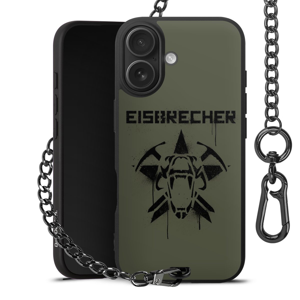 Die mattschwarze Silikon-Handyhülle besteht aus robustem TPU (thermoplastisches Polyurethan). Sie ist flexibel und schützt Dein Smartphone vor Stößen und Kratzern. Die Kette sowie der Karabinerhaken sind aus Metall in Gunmetal-Optik gefertigt. Für dieses Produkt kommen ausschließlich TÜV-geprüfte Materialien zum Einsatz.