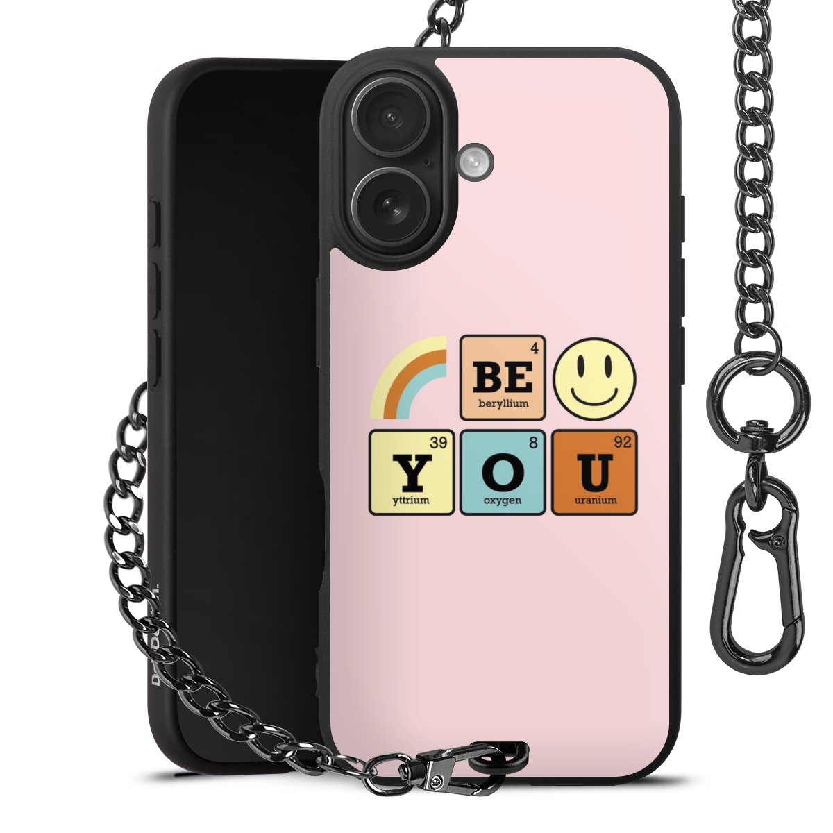 Die mattschwarze Silikon-Handyhülle besteht aus robustem TPU (thermoplastisches Polyurethan). Sie ist flexibel und schützt Dein Smartphone vor Stößen und Kratzern. Die Kette sowie der Karabinerhaken sind aus Metall in Gunmetal-Optik gefertigt. Für dieses Produkt kommen ausschließlich TÜV-geprüfte Materialien zum Einsatz.