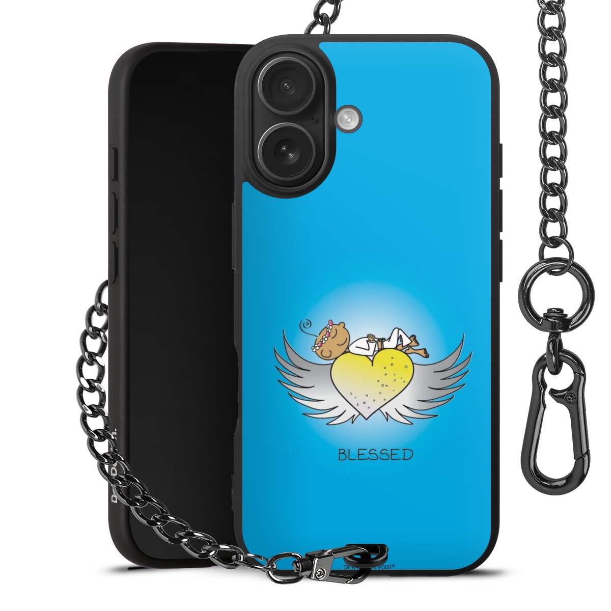 Die mattschwarze Silikon-Handyhülle besteht aus robustem TPU (thermoplastisches Polyurethan). Sie ist flexibel und schützt Dein Smartphone vor Stößen und Kratzern. Die Kette sowie der Karabinerhaken sind aus Metall in Gunmetal-Optik gefertigt. Für dieses Produkt kommen ausschließlich TÜV-geprüfte Materialien zum Einsatz.