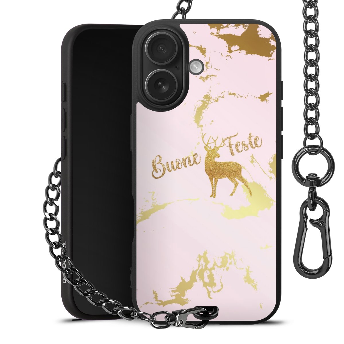 • Mattschwarze Handyhülle mit Metallkette