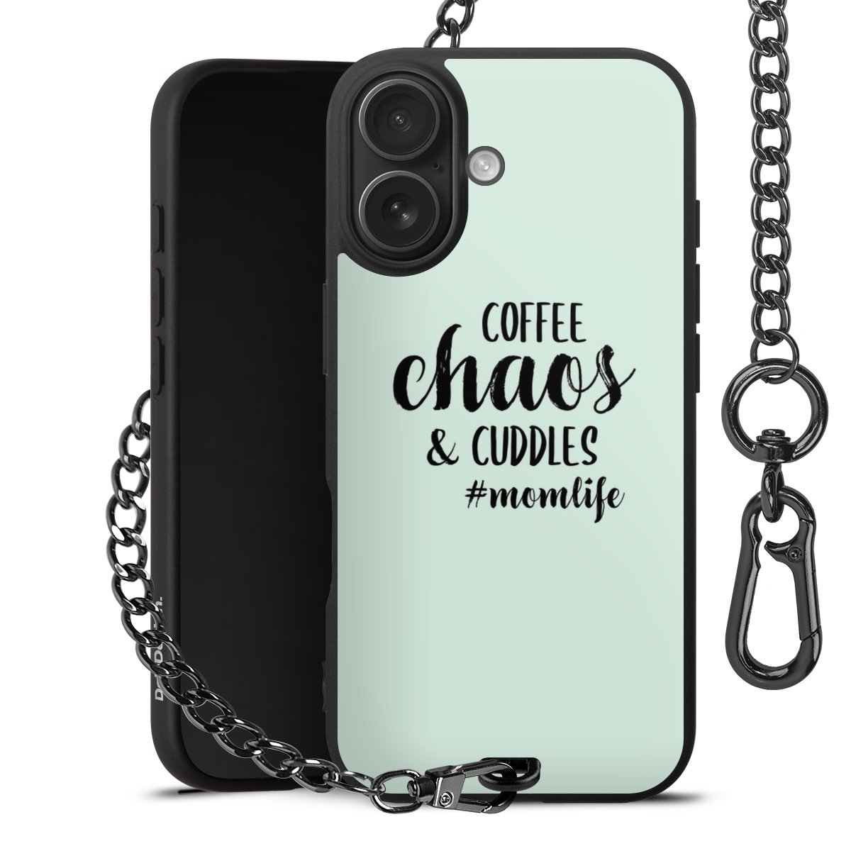 Die mattschwarze Silikon-Handyhülle besteht aus robustem TPU (thermoplastisches Polyurethan). Sie ist flexibel und schützt Dein Smartphone vor Stößen und Kratzern. Die Kette sowie der Karabinerhaken sind aus Metall in Gunmetal-Optik gefertigt. Für dieses Produkt kommen ausschließlich TÜV-geprüfte Materialien zum Einsatz.