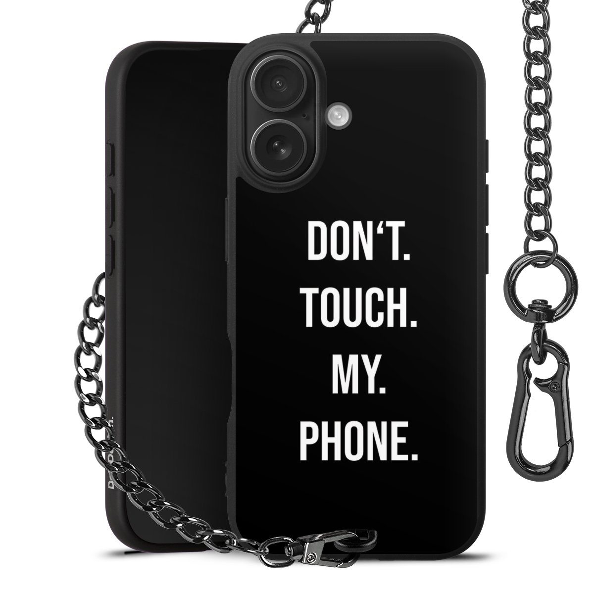 - Mattschwarze Handyhülle mit Metallkette