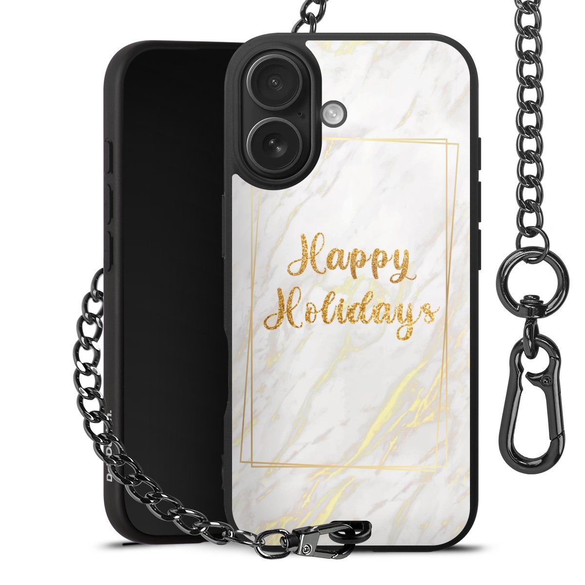 - Mattschwarze Handyhülle mit Metallkette