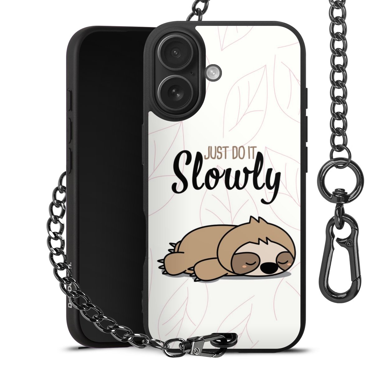 - Mattschwarze Handyhülle mit Metallkette