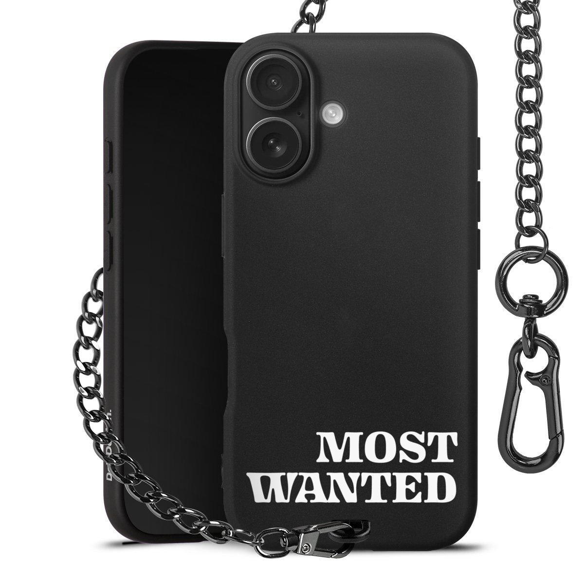 • Mattschwarze Handyhülle mit Metallkette