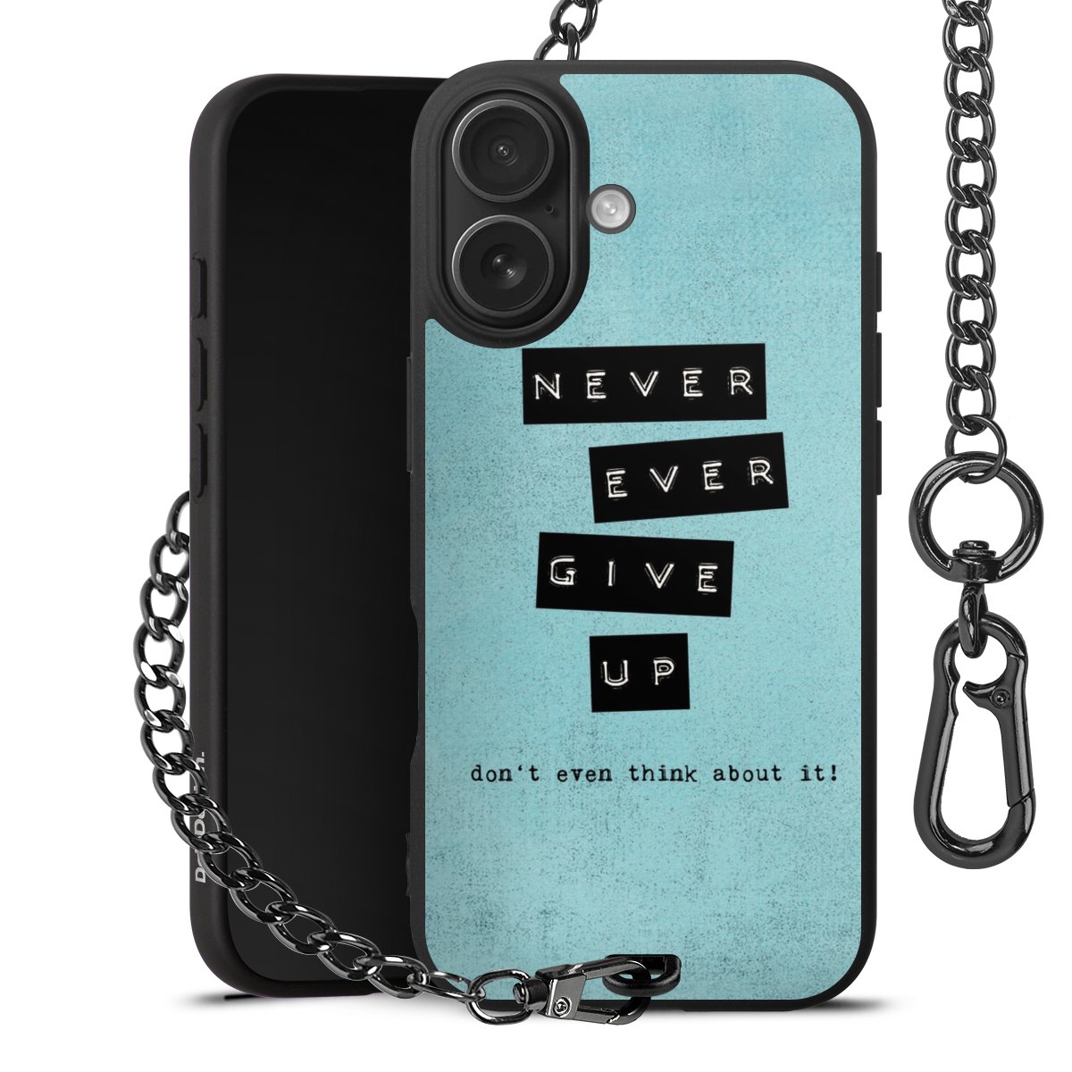 Die mattschwarze Silikon-Handyhülle besteht aus robustem TPU (thermoplastisches Polyurethan). Sie ist flexibel und schützt Dein Smartphone vor Stößen und Kratzern. Die Kette sowie der Karabinerhaken sind aus Metall in Gunmetal-Optik gefertigt. Für dieses Produkt kommen ausschließlich TÜV-geprüfte Materialien zum Einsatz.