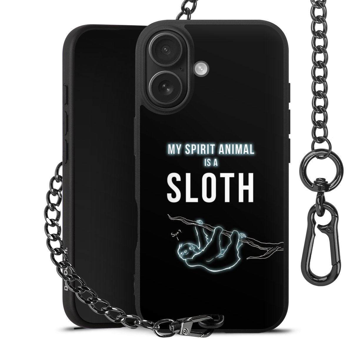 Die mattschwarze Silikon-Handyhülle besteht aus robustem TPU (thermoplastisches Polyurethan). Sie ist flexibel und schützt Dein Smartphone vor Stößen und Kratzern. Die Kette sowie der Karabinerhaken sind aus Metall in Gunmetal-Optik gefertigt. Für dieses Produkt kommen ausschließlich TÜV-geprüfte Materialien zum Einsatz.