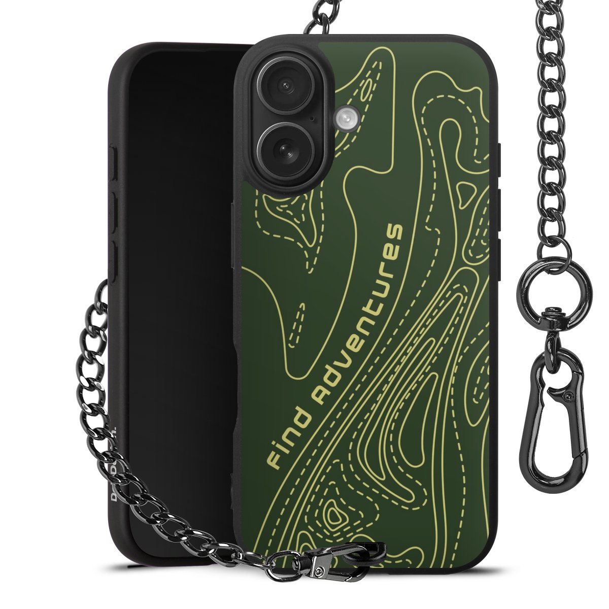 Die mattschwarze Silikon-Handyhülle besteht aus robustem TPU (thermoplastisches Polyurethan). Sie ist flexibel und schützt Dein Smartphone vor Stößen und Kratzern. Die Kette sowie der Karabinerhaken sind aus Metall in Gunmetal-Optik gefertigt. Für dieses Produkt kommen ausschließlich TÜV-geprüfte Materialien zum Einsatz.