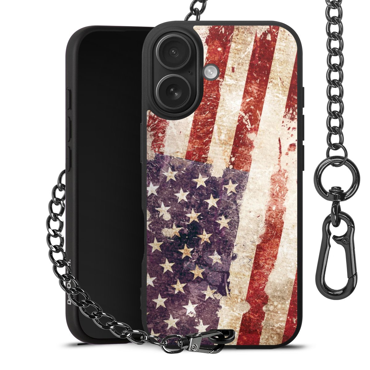 - Mattschwarze Handyhülle mit Metallkette