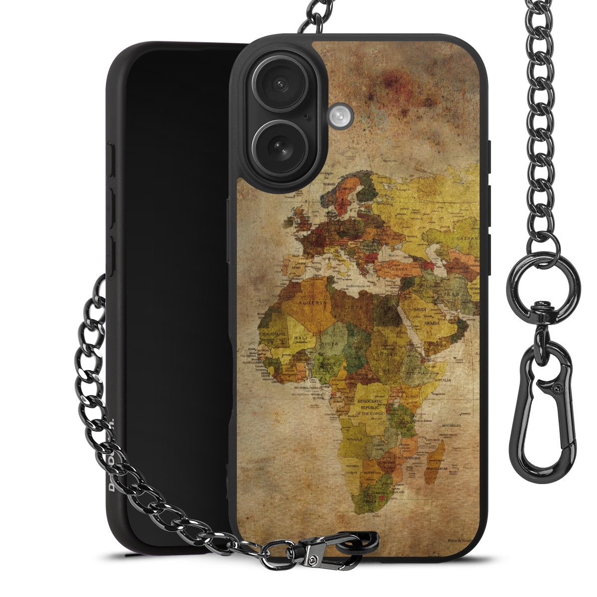 - Mattschwarze Handyhülle mit Metallkette