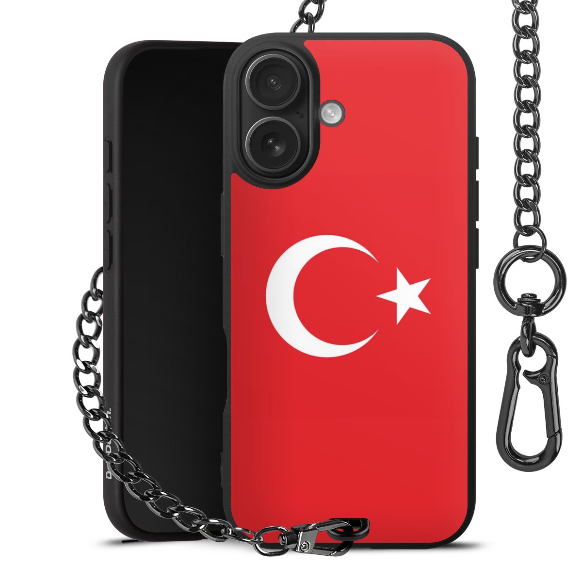 Die mattschwarze Silikon-Handyhülle besteht aus robustem TPU (thermoplastisches Polyurethan). Sie ist flexibel und schützt Dein Smartphone vor Stößen und Kratzern. Die Kette sowie der Karabinerhaken sind aus Metall in Gunmetal-Optik gefertigt. Für dieses Produkt kommen ausschließlich TÜV-geprüfte Materialien zum Einsatz.