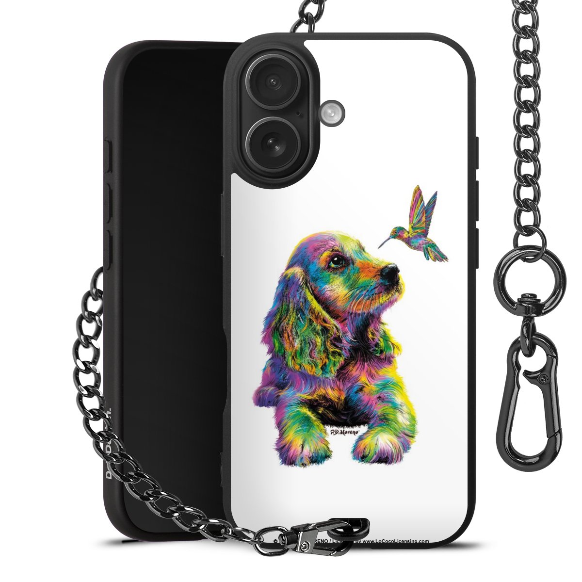 Die Handyhülle verfügt über eine mittig am unteren Rand platzierte Öse, an der die Metallkette stabil befestigt ist. Bestelle die Hülle einfach für Dein Smartphone-Modell, dann passt sie wie angegossen und Du brauchst sie bloß einmal anzudrücken. Handy in die Tasche, Karabiner an den Hosenbund – schon kann die Party starten.
