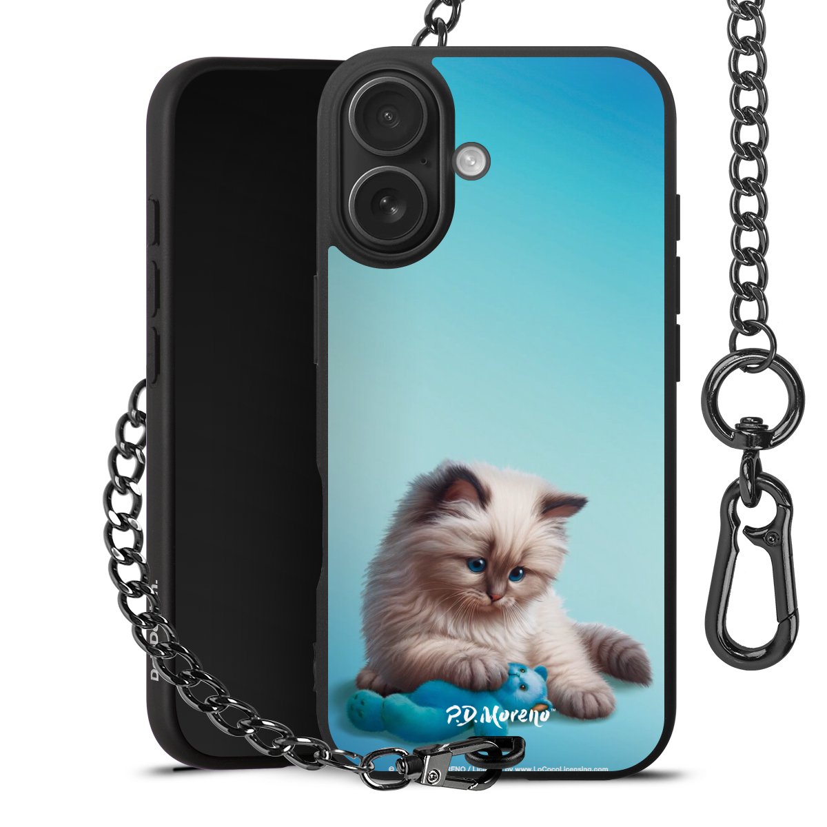 Die mattschwarze Silikon-Handyhülle besteht aus robustem TPU (thermoplastisches Polyurethan). Sie ist flexibel und schützt Dein Smartphone vor Stößen und Kratzern. Die Kette sowie der Karabinerhaken sind aus Metall in Gunmetal-Optik gefertigt. Für dieses Produkt kommen ausschließlich TÜV-geprüfte Materialien zum Einsatz.