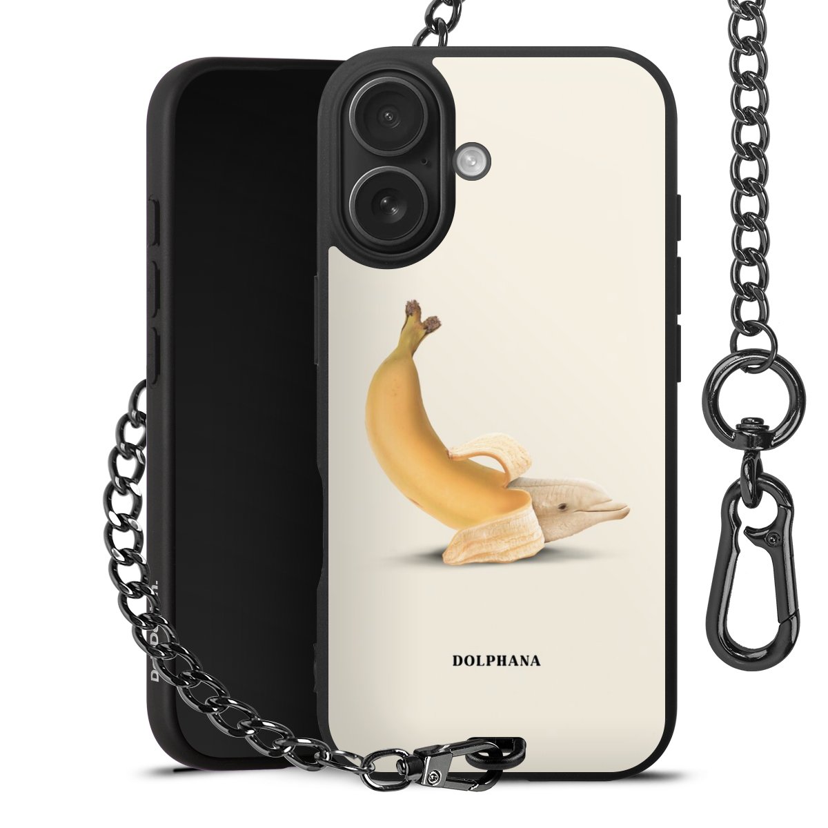 • Mattschwarze Handyhülle mit Metallkette