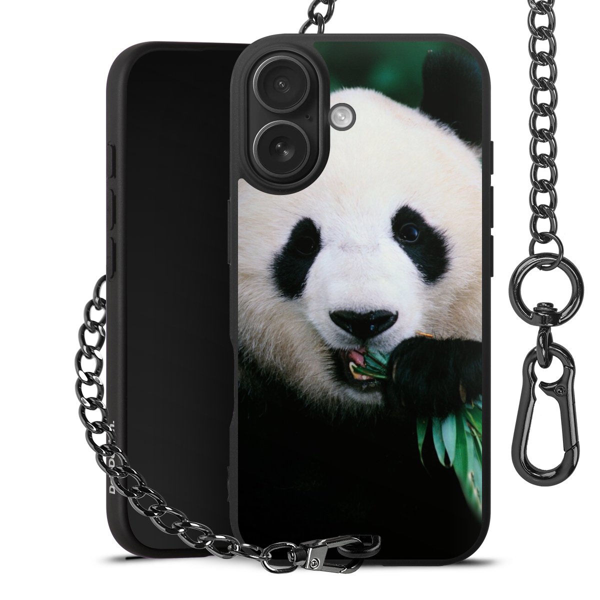 - Mattschwarze Handyhülle mit Metallkette