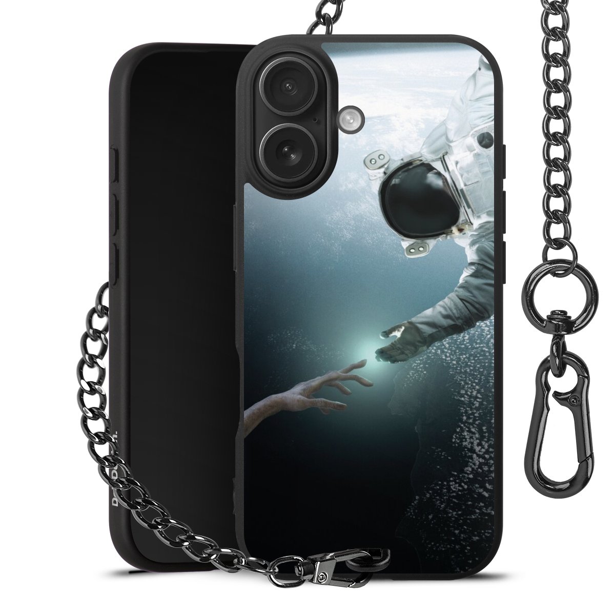 - Mattschwarze Handyhülle mit Metallkette