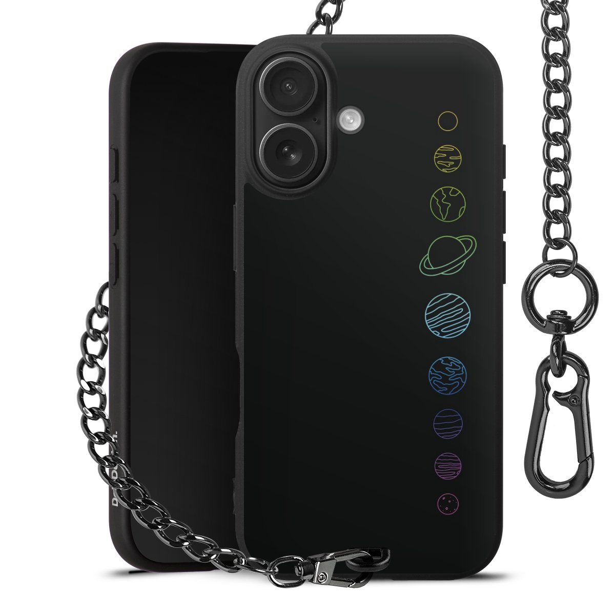 Die mattschwarze Silikon-Handyhülle besteht aus robustem TPU (thermoplastisches Polyurethan). Sie ist flexibel und schützt Dein Smartphone vor Stößen und Kratzern. Die Kette sowie der Karabinerhaken sind aus Metall in Gunmetal-Optik gefertigt. Für dieses Produkt kommen ausschließlich TÜV-geprüfte Materialien zum Einsatz.