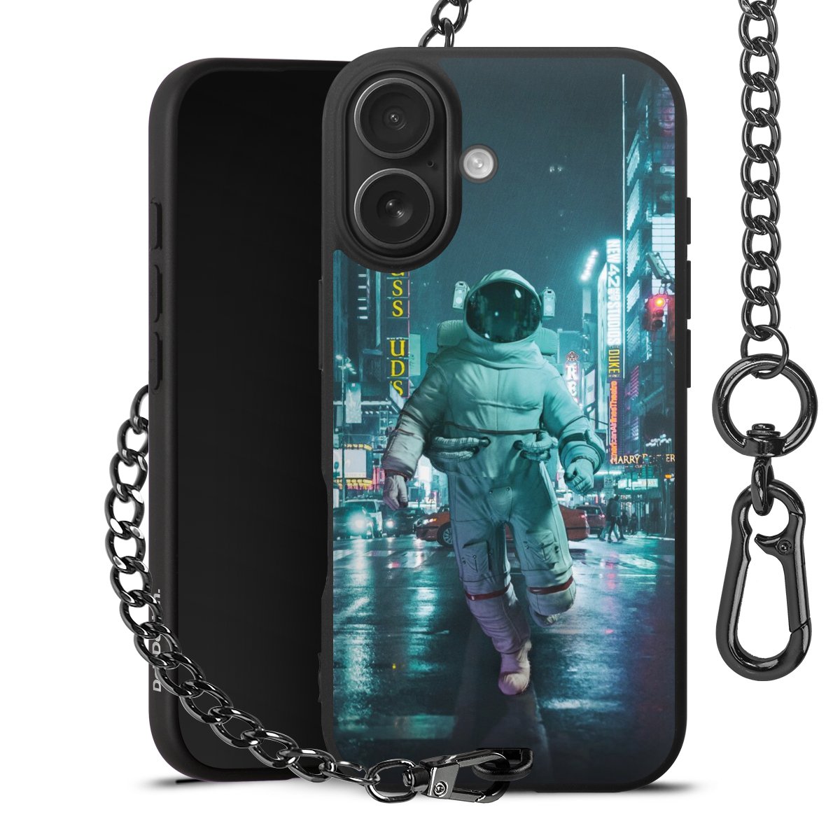 • Mattschwarze Handyhülle mit Metallkette
