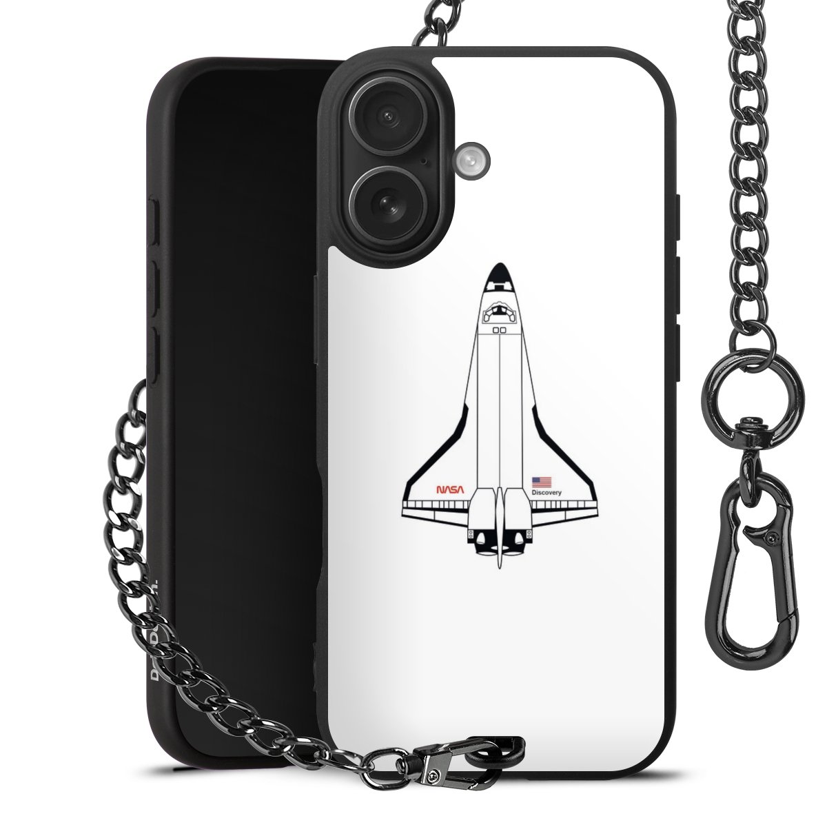 - Mattschwarze Handyhülle mit Metallkette