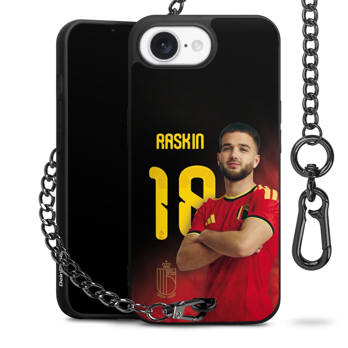 Die mattschwarze Silikon-Handyhülle besteht aus robustem TPU (thermoplastisches Polyurethan). Sie ist flexibel und schützt Dein Smartphone vor Stößen und Kratzern. Die Kette sowie der Karabinerhaken sind aus Metall in Gunmetal-Optik gefertigt. Für dieses Produkt kommen ausschließlich TÜV-geprüfte Materialien zum Einsatz.