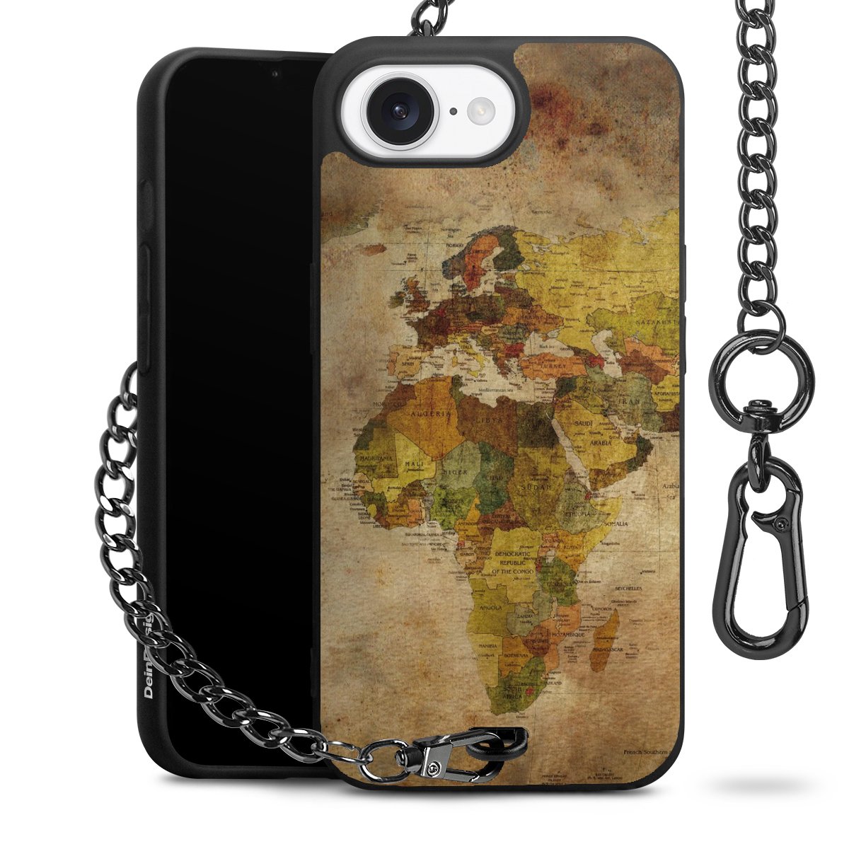 - Mattschwarze Handyhülle mit Metallkette