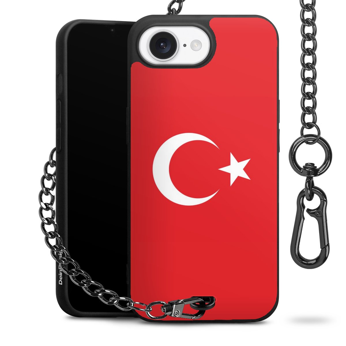 Die mattschwarze Silikon-Handyhülle besteht aus robustem TPU (thermoplastisches Polyurethan). Sie ist flexibel und schützt Dein Smartphone vor Stößen und Kratzern. Die Kette sowie der Karabinerhaken sind aus Metall in Gunmetal-Optik gefertigt. Für dieses Produkt kommen ausschließlich TÜV-geprüfte Materialien zum Einsatz.