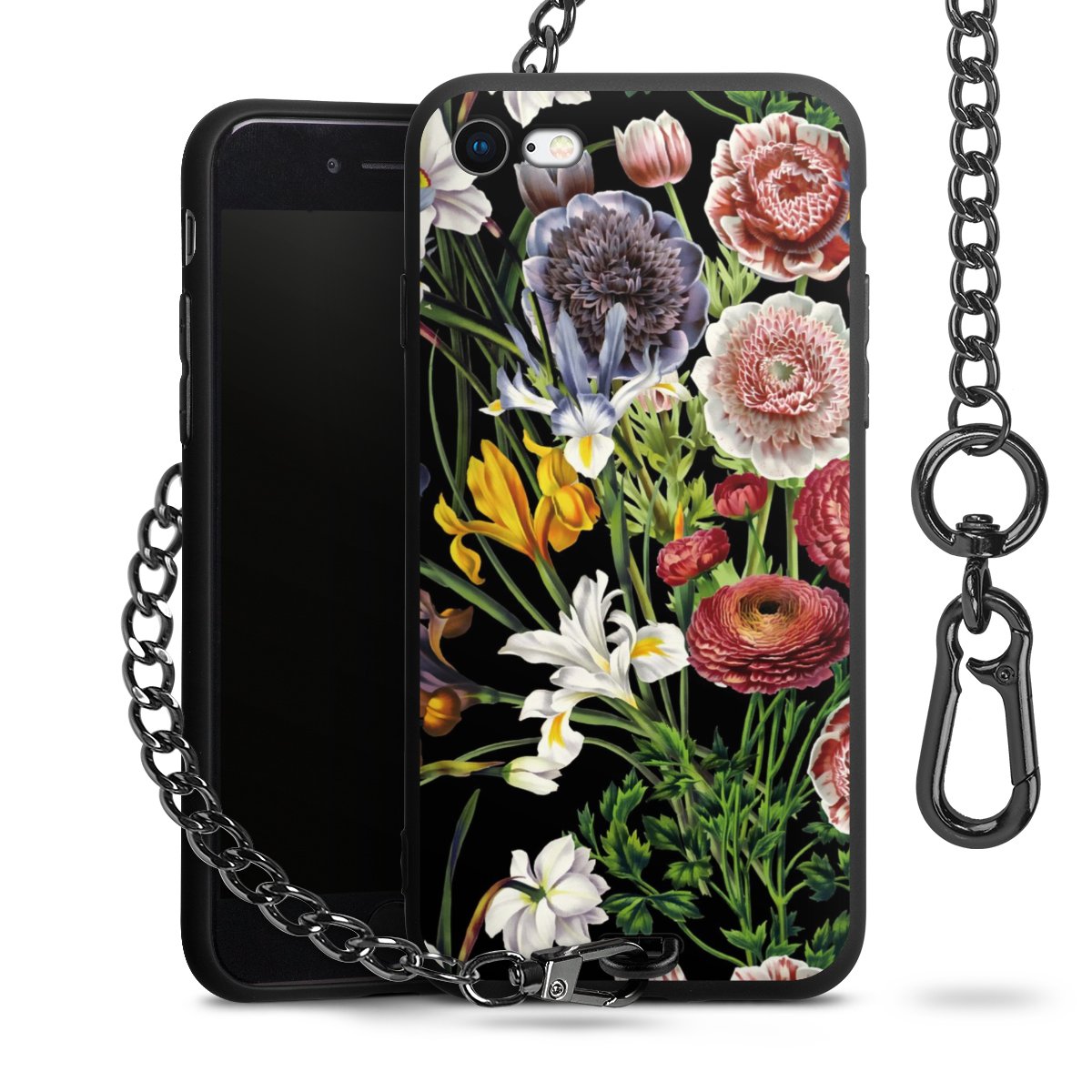 • Mattschwarze Handyhülle mit Metallkette