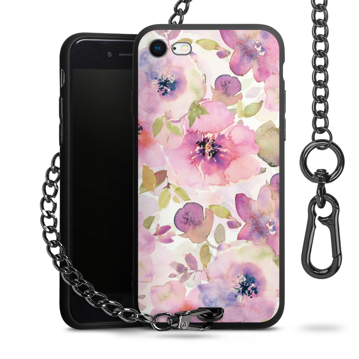 • Mattschwarze Handyhülle mit Metallkette