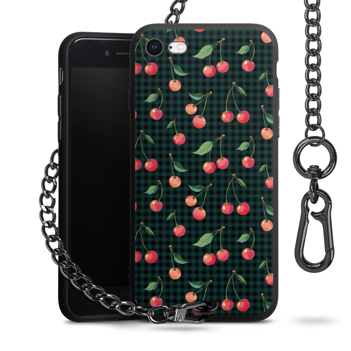 Die mattschwarze Silikon-Handyhülle besteht aus robustem TPU (thermoplastisches Polyurethan). Sie ist flexibel und schützt Dein Smartphone vor Stößen und Kratzern. Die Kette sowie der Karabinerhaken sind aus Metall in Gunmetal-Optik gefertigt. Für dieses Produkt kommen ausschließlich TÜV-geprüfte Materialien zum Einsatz.