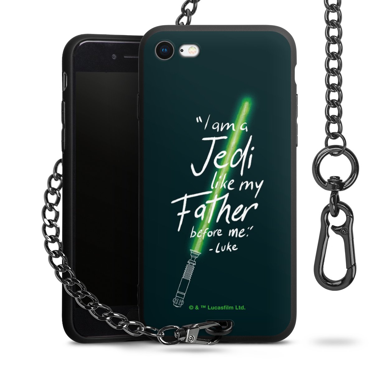 Die mattschwarze Silikon-Handyhülle besteht aus robustem TPU (thermoplastisches Polyurethan). Sie ist flexibel und schützt Dein Smartphone vor Stößen und Kratzern. Die Kette sowie der Karabinerhaken sind aus Metall in Gunmetal-Optik gefertigt. Für dieses Produkt kommen ausschließlich TÜV-geprüfte Materialien zum Einsatz.