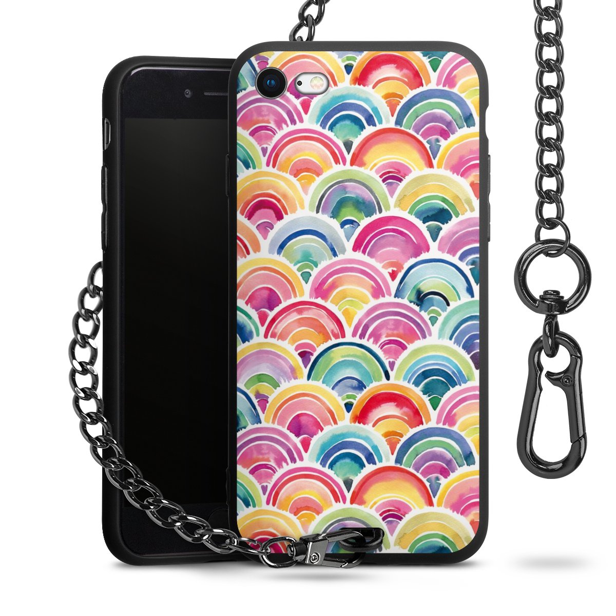 • Mattschwarze Handyhülle mit Metallkette