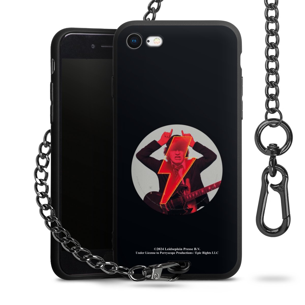 Die Handyhülle verfügt über eine mittig am unteren Rand platzierte Öse, an der die Metallkette stabil befestigt ist. Bestelle die Hülle einfach für Dein Smartphone-Modell, dann passt sie wie angegossen und Du brauchst sie bloß einmal anzudrücken. Handy in die Tasche, Karabiner an den Hosenbund – schon kann die Party starten.