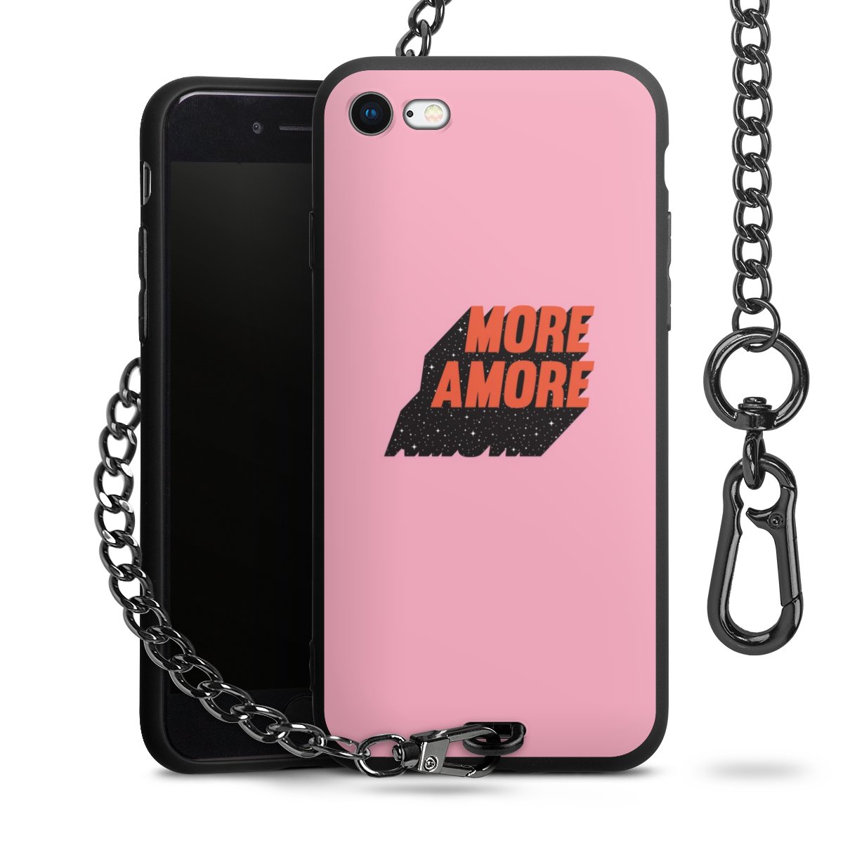 • Mattschwarze Handyhülle mit Metallkette