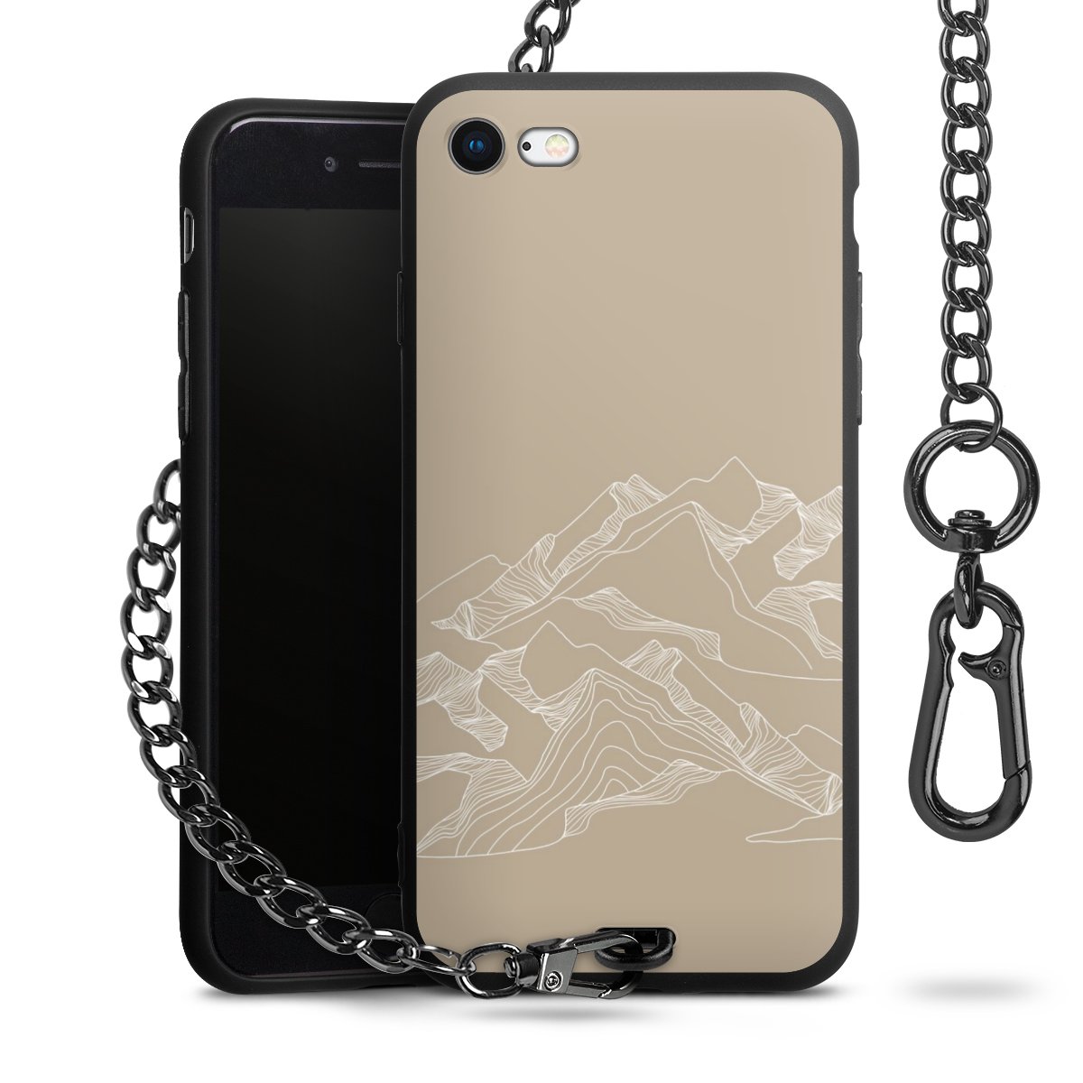 Die mattschwarze Silikon-Handyhülle besteht aus robustem TPU (thermoplastisches Polyurethan). Sie ist flexibel und schützt Dein Smartphone vor Stößen und Kratzern. Die Kette sowie der Karabinerhaken sind aus Metall in Gunmetal-Optik gefertigt. Für dieses Produkt kommen ausschließlich TÜV-geprüfte Materialien zum Einsatz.