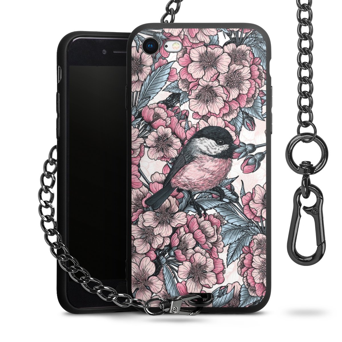 Die mattschwarze Silikon-Handyhülle besteht aus robustem TPU (thermoplastisches Polyurethan). Sie ist flexibel und schützt Dein Smartphone vor Stößen und Kratzern. Die Kette sowie der Karabinerhaken sind aus Metall in Gunmetal-Optik gefertigt. Für dieses Produkt kommen ausschließlich TÜV-geprüfte Materialien zum Einsatz.