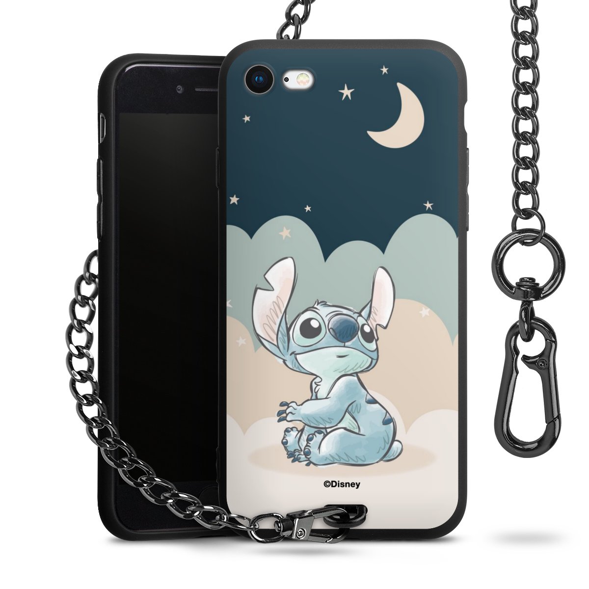 Die Handyhülle verfügt über eine mittig am unteren Rand platzierte Öse, an der die Metallkette stabil befestigt ist. Bestelle die Hülle einfach für Dein Smartphone-Modell, dann passt sie wie angegossen und Du brauchst sie bloß einmal anzudrücken. Handy in die Tasche, Karabiner an den Hosenbund – schon kann die Party starten.