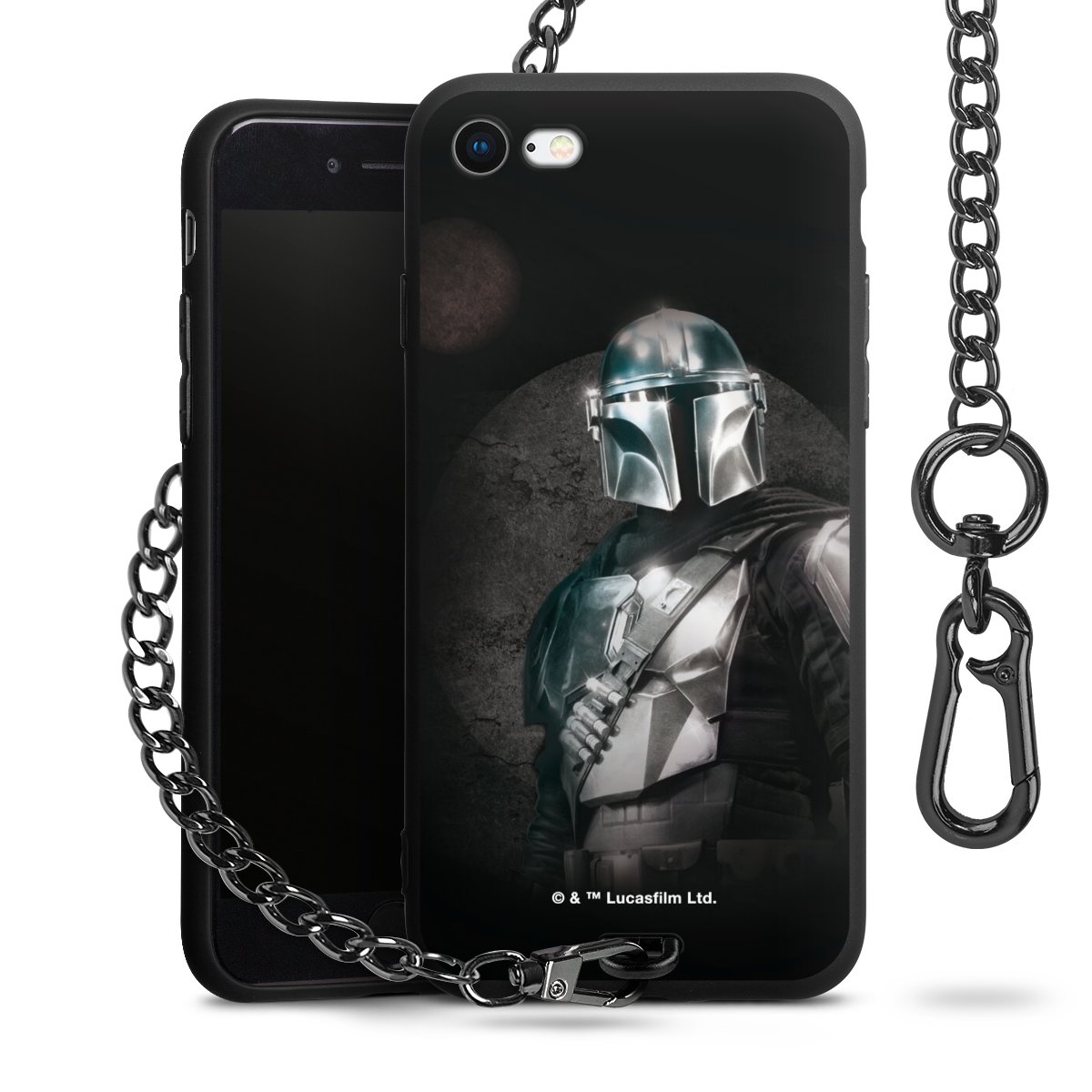 Die mattschwarze Silikon-Handyhülle besteht aus robustem TPU (thermoplastisches Polyurethan). Sie ist flexibel und schützt Dein Smartphone vor Stößen und Kratzern. Die Kette sowie der Karabinerhaken sind aus Metall in Gunmetal-Optik gefertigt. Für dieses Produkt kommen ausschließlich TÜV-geprüfte Materialien zum Einsatz.