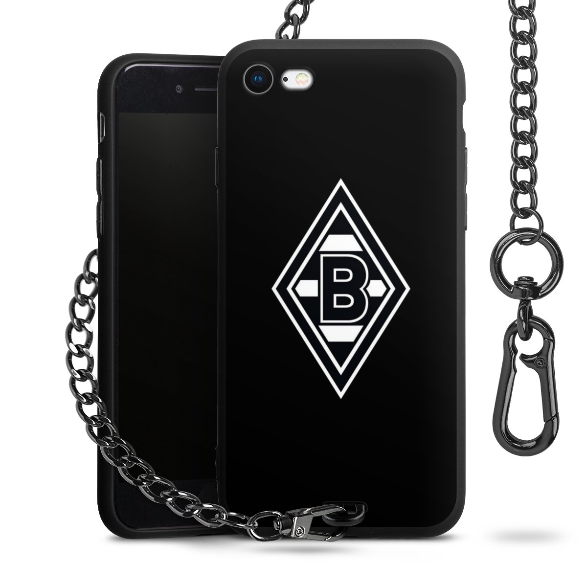 Die mattschwarze Silikon-Handyhülle besteht aus robustem TPU (thermoplastisches Polyurethan). Sie ist flexibel und schützt Dein Smartphone vor Stößen und Kratzern. Die Kette sowie der Karabinerhaken sind aus Metall in Gunmetal-Optik gefertigt. Für dieses Produkt kommen ausschließlich TÜV-geprüfte Materialien zum Einsatz.