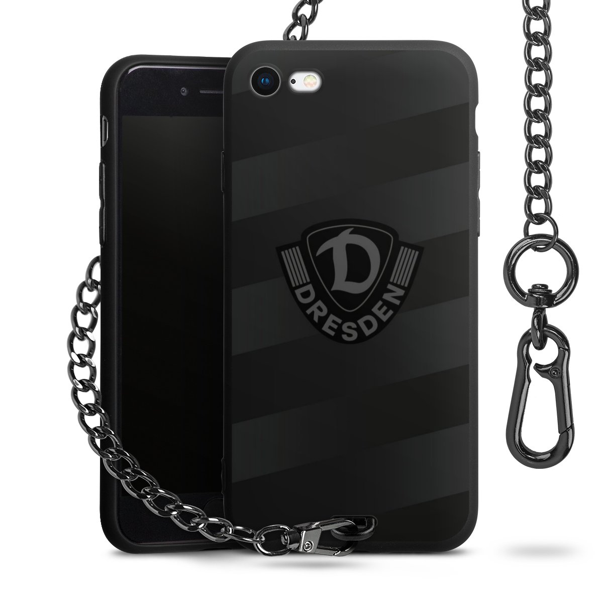 Die mattschwarze Silikon-Handyhülle besteht aus robustem TPU (thermoplastisches Polyurethan). Sie ist flexibel und schützt Dein Smartphone vor Stößen und Kratzern. Die Kette sowie der Karabinerhaken sind aus Metall in Gunmetal-Optik gefertigt. Für dieses Produkt kommen ausschließlich TÜV-geprüfte Materialien zum Einsatz.