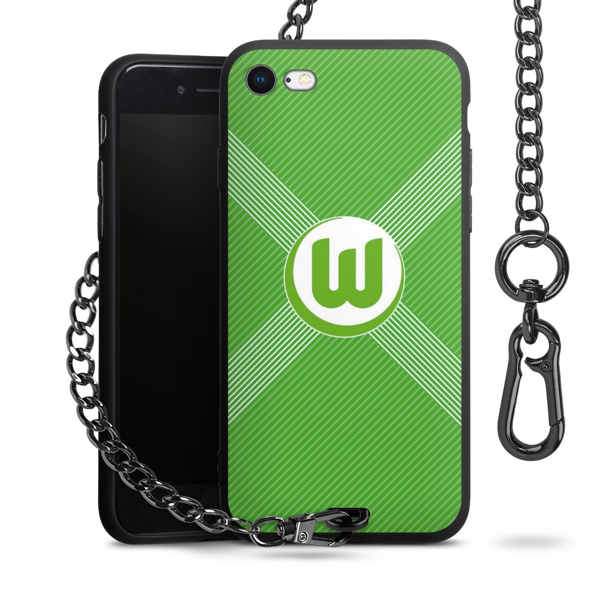 Die mattschwarze Silikon-Handyhülle besteht aus robustem TPU (thermoplastisches Polyurethan). Sie ist flexibel und schützt Dein Smartphone vor Stößen und Kratzern. Die Kette sowie der Karabinerhaken sind aus Metall in Gunmetal-Optik gefertigt. Für dieses Produkt kommen ausschließlich TÜV-geprüfte Materialien zum Einsatz.
