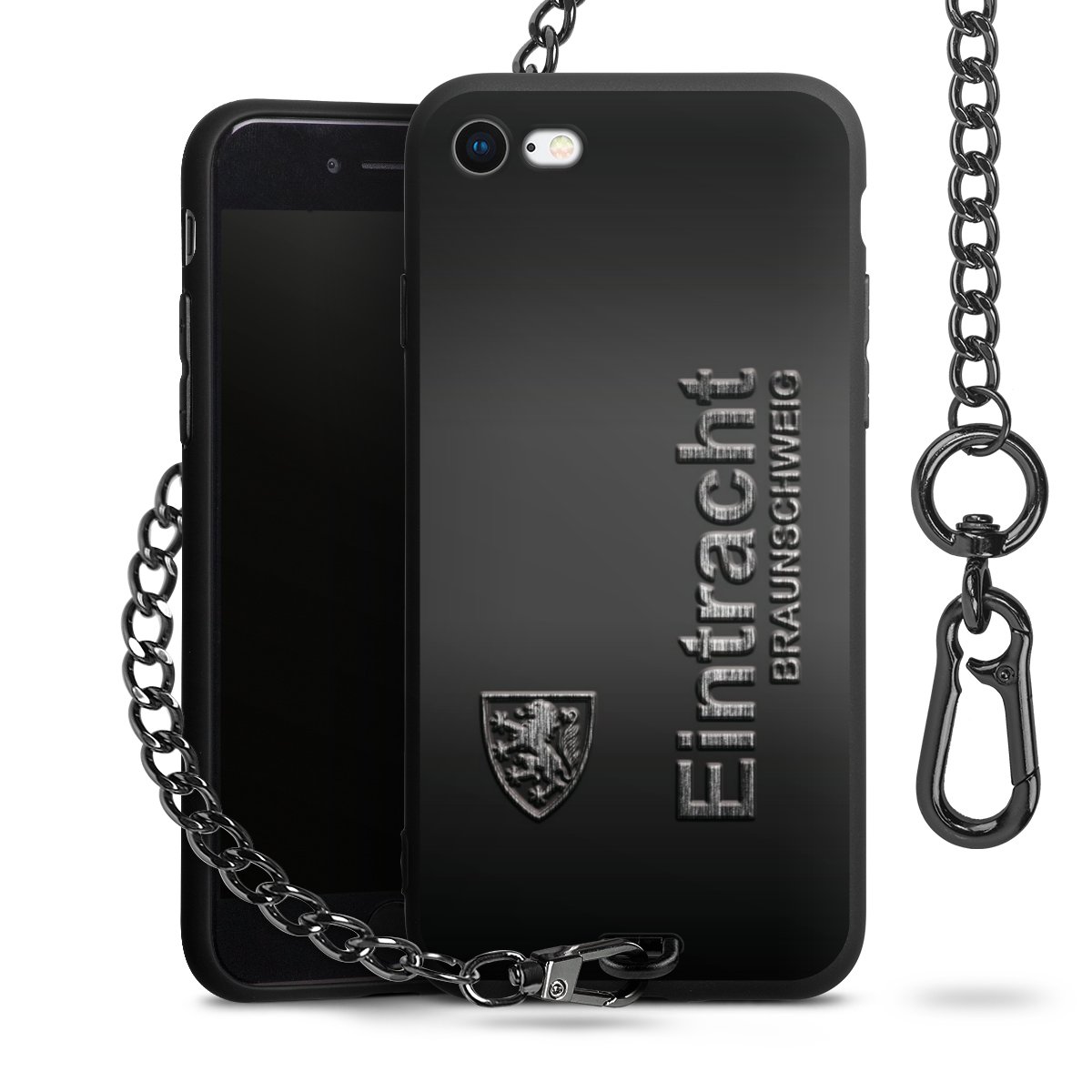 • Mattschwarze Handyhülle mit Metallkette