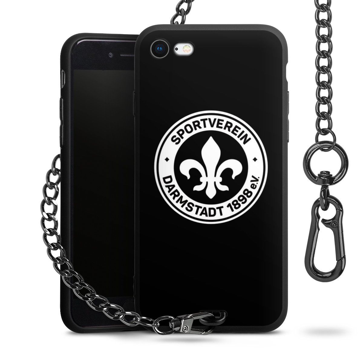 Die mattschwarze Silikon-Handyhülle besteht aus robustem TPU (thermoplastisches Polyurethan). Sie ist flexibel und schützt Dein Smartphone vor Stößen und Kratzern. Die Kette sowie der Karabinerhaken sind aus Metall in Gunmetal-Optik gefertigt. Für dieses Produkt kommen ausschließlich TÜV-geprüfte Materialien zum Einsatz.