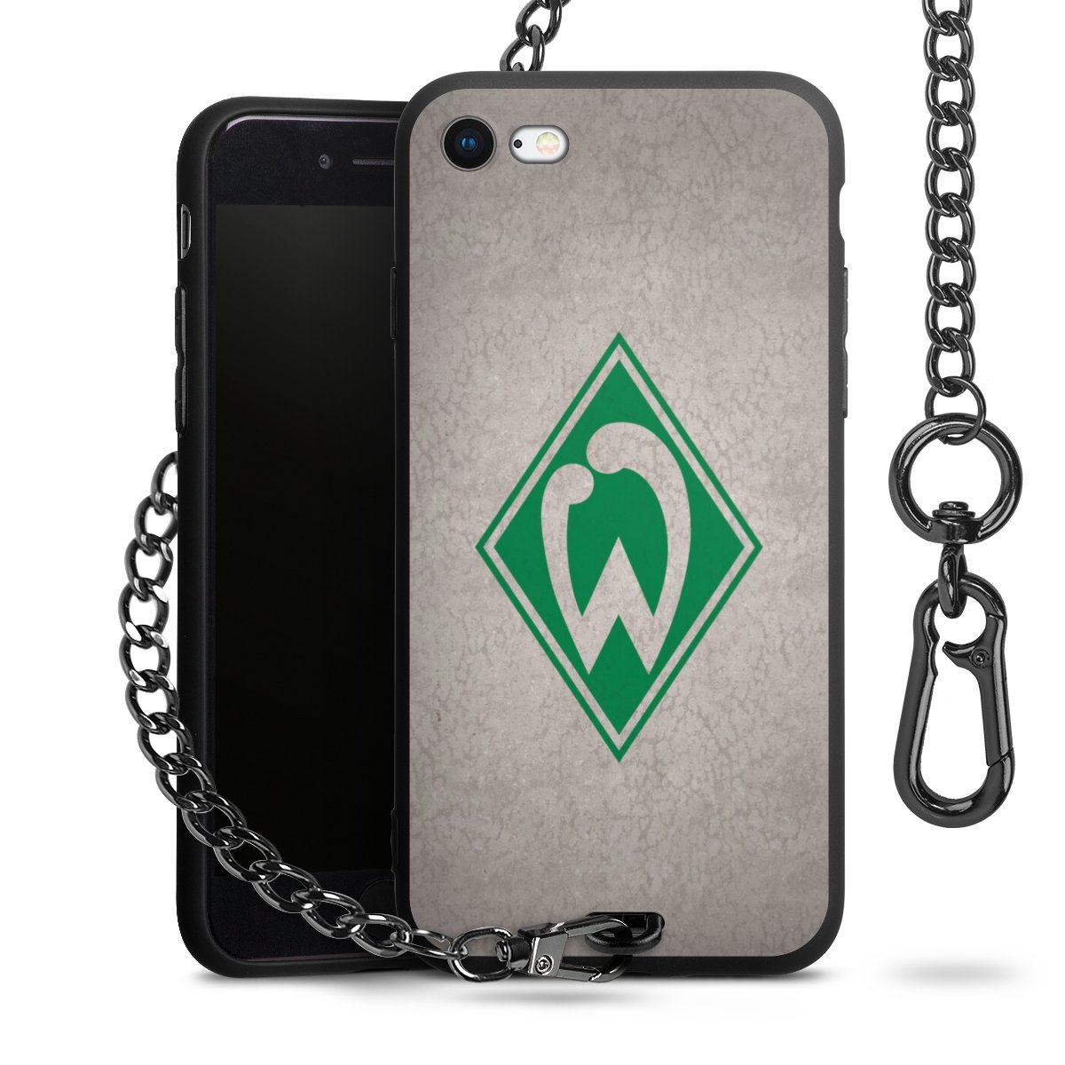 Die mattschwarze Silikon-Handyhülle besteht aus robustem TPU (thermoplastisches Polyurethan). Sie ist flexibel und schützt Dein Smartphone vor Stößen und Kratzern. Die Kette sowie der Karabinerhaken sind aus Metall in Gunmetal-Optik gefertigt. Für dieses Produkt kommen ausschließlich TÜV-geprüfte Materialien zum Einsatz.