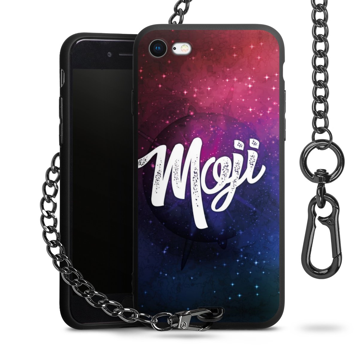 • Mattschwarze Handyhülle mit Metallkette