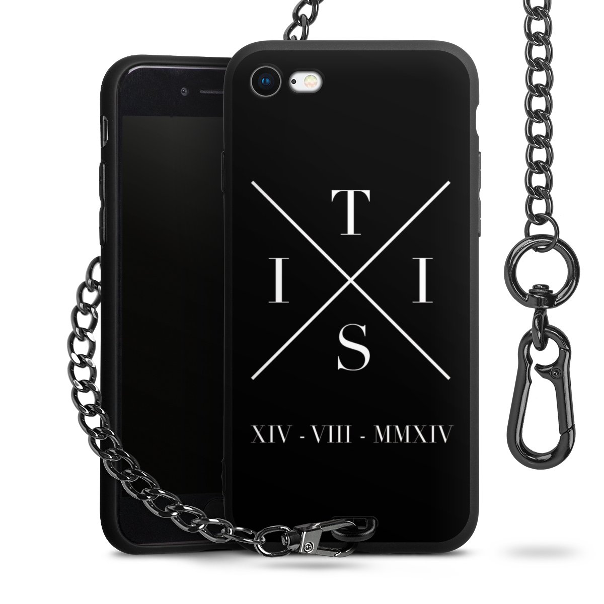 Die mattschwarze Silikon-Handyhülle besteht aus robustem TPU (thermoplastisches Polyurethan). Sie ist flexibel und schützt Dein Smartphone vor Stößen und Kratzern. Die Kette sowie der Karabinerhaken sind aus Metall in Gunmetal-Optik gefertigt. Für dieses Produkt kommen ausschließlich TÜV-geprüfte Materialien zum Einsatz.