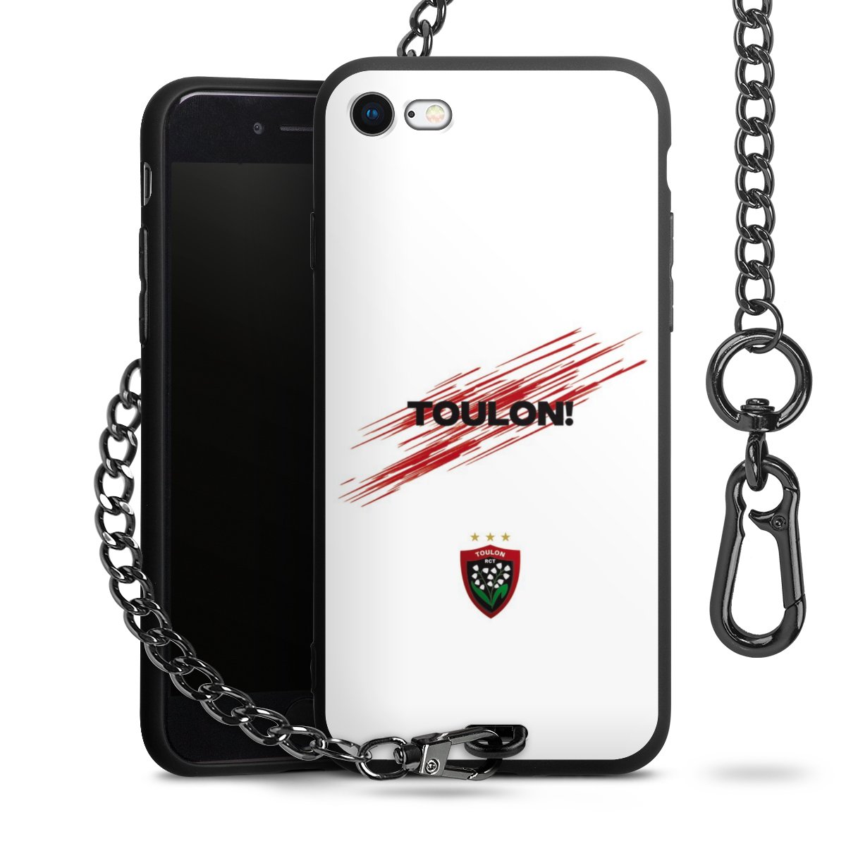 Die mattschwarze Silikon-Handyhülle besteht aus robustem TPU (thermoplastisches Polyurethan). Sie ist flexibel und schützt Dein Smartphone vor Stößen und Kratzern. Die Kette sowie der Karabinerhaken sind aus Metall in Gunmetal-Optik gefertigt. Für dieses Produkt kommen ausschließlich TÜV-geprüfte Materialien zum Einsatz.