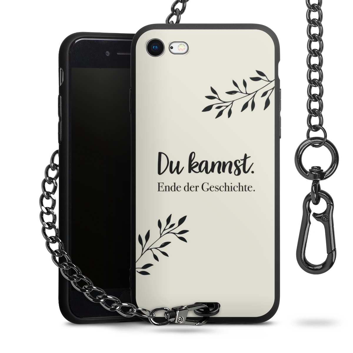 Die mattschwarze Silikon-Handyhülle besteht aus robustem TPU (thermoplastisches Polyurethan). Sie ist flexibel und schützt Dein Smartphone vor Stößen und Kratzern. Die Kette sowie der Karabinerhaken sind aus Metall in Gunmetal-Optik gefertigt. Für dieses Produkt kommen ausschließlich TÜV-geprüfte Materialien zum Einsatz.