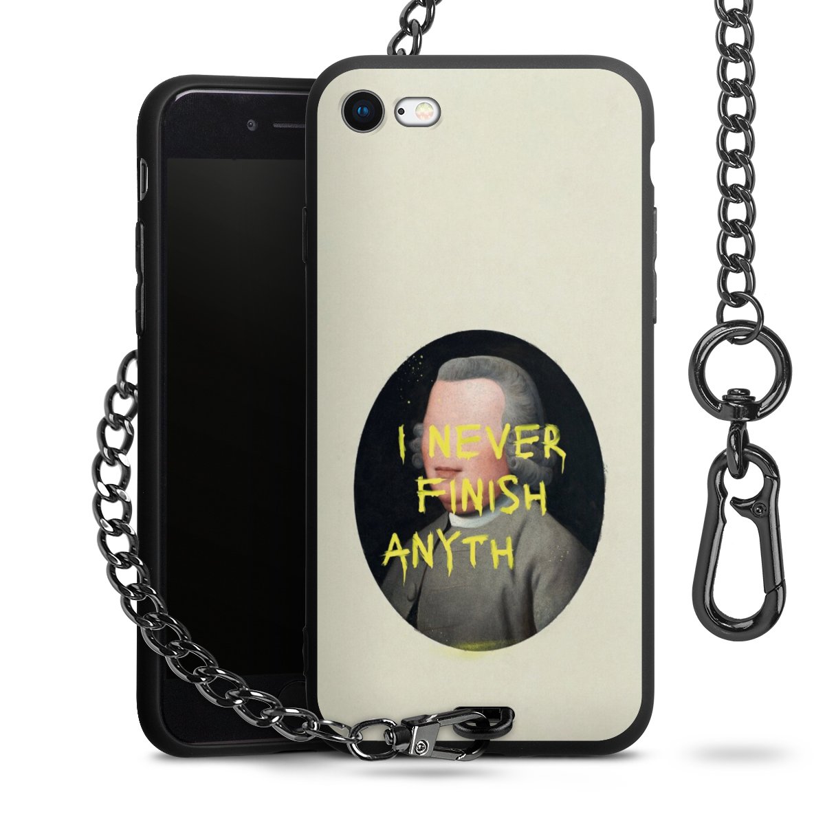 • Mattschwarze Handyhülle mit Metallkette