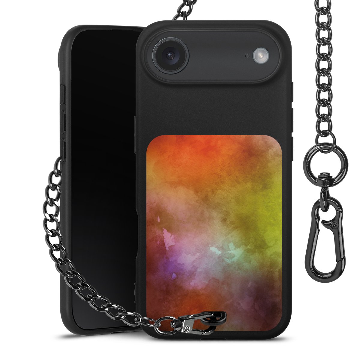 • Mattschwarze Handyhülle mit Metallkette