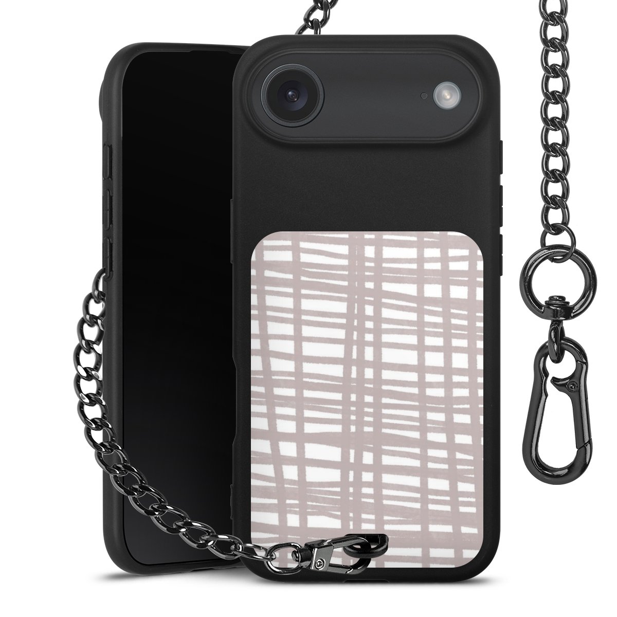 • Mattschwarze Handyhülle mit Metallkette